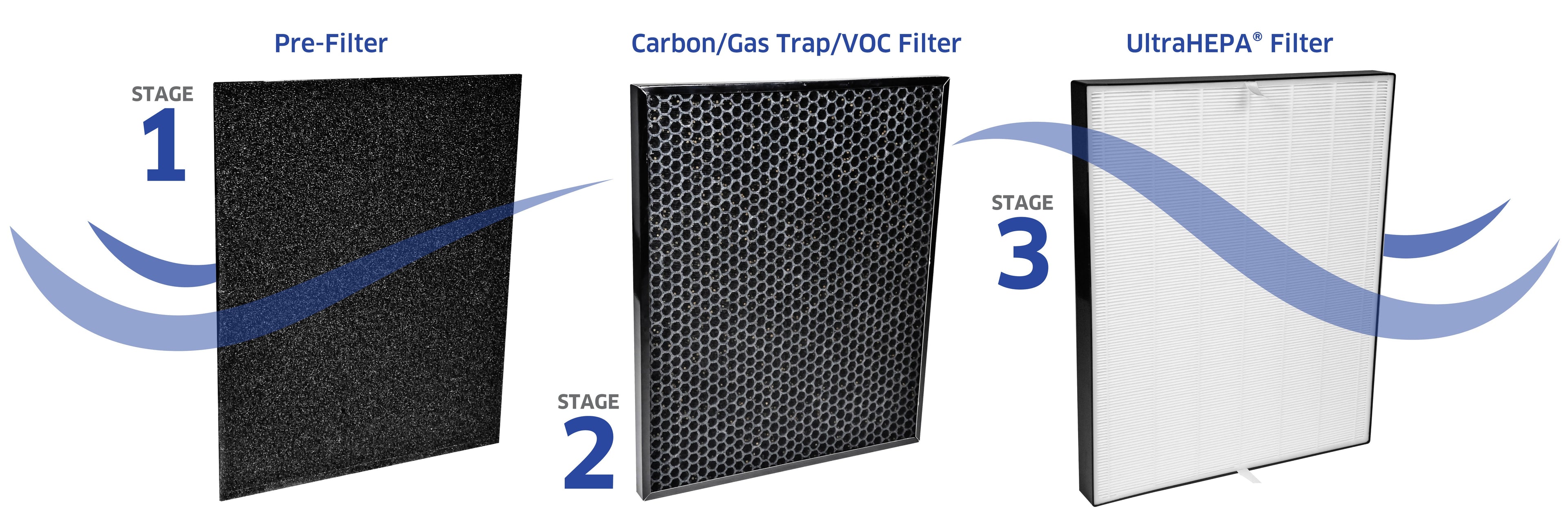 Designed to remove larger contaminants like dust and animal hair. Includes 3 Pre-Filters. This pack does NOT include any Carbon/VOC filters. We recommend giving your Pre-Filter a quick vacuum once per month to help extend the life of your Carbon/VOC or UltraHEPA® Filters. Please NEVER wash your Carbon/VOC or UltraHEPA®.
