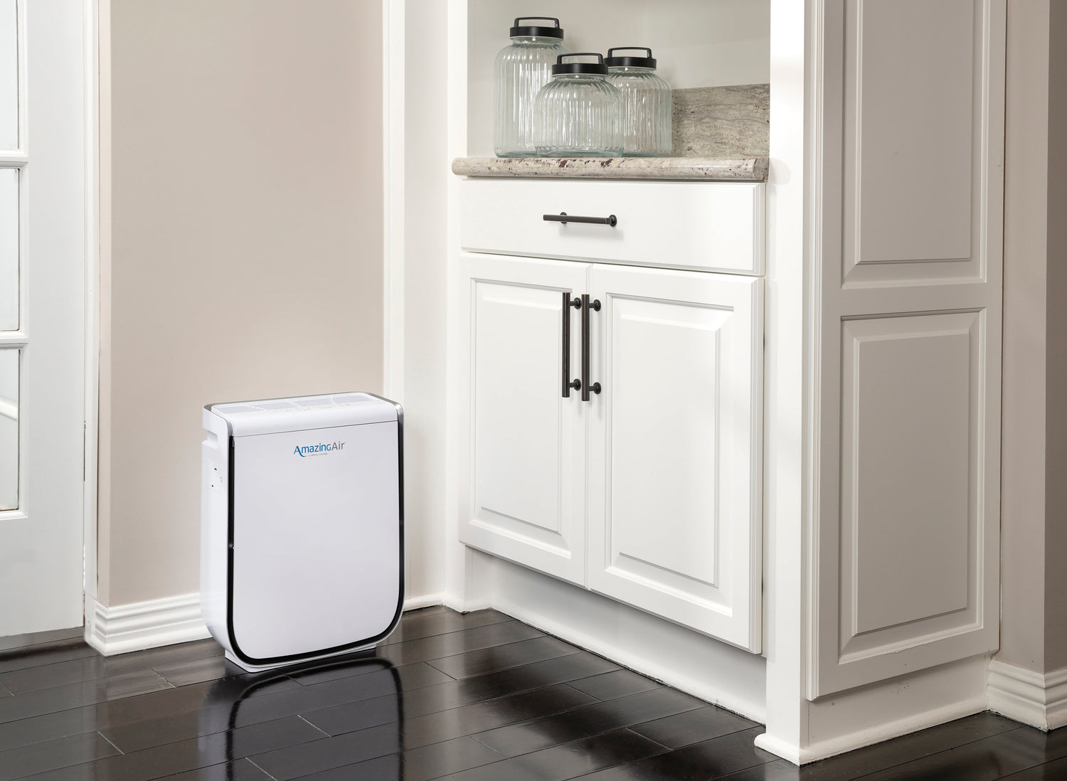 AmazingAir features professional WhisperJet fans, which are 30% quieter than ordinary air purifiers, and features a built-in air quality monitor which lets you know if your indoor air quality is good, moderate or poor and automatically adjusts the level of filtration based on the air quality in the room.